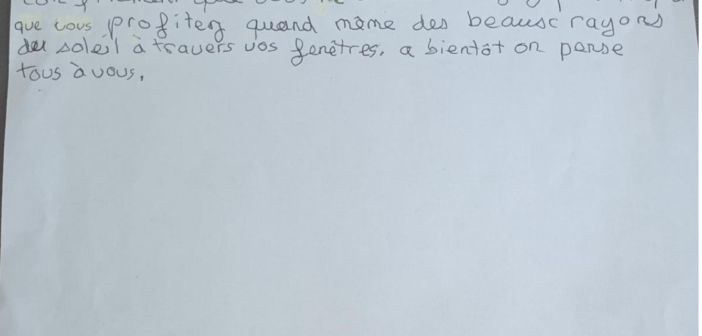 Perrine Chatelain, enseignante de CM2 à l’école de la Brunerie a demandé à ses élèves de préparer des courriers, des dessins, à destination des résidents de l’EHPAD pour égayer un peu leur quotidien. L’école à pris cette initiative spontanément !