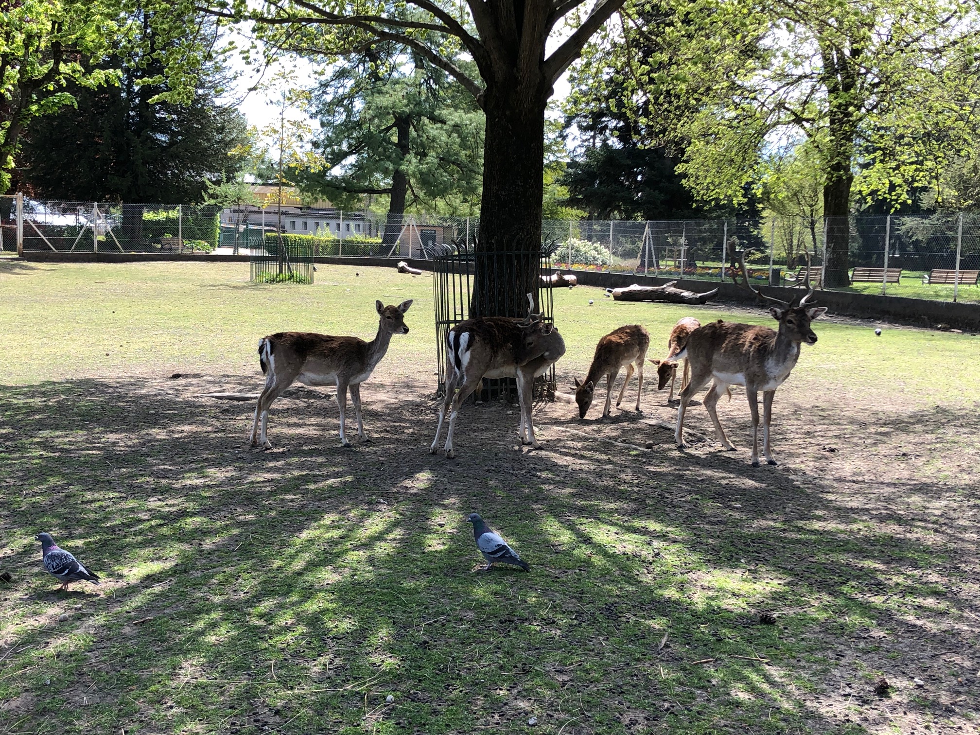 Je passe devant l’enclos des daims, et là, comme figés, ils me regardent tous !