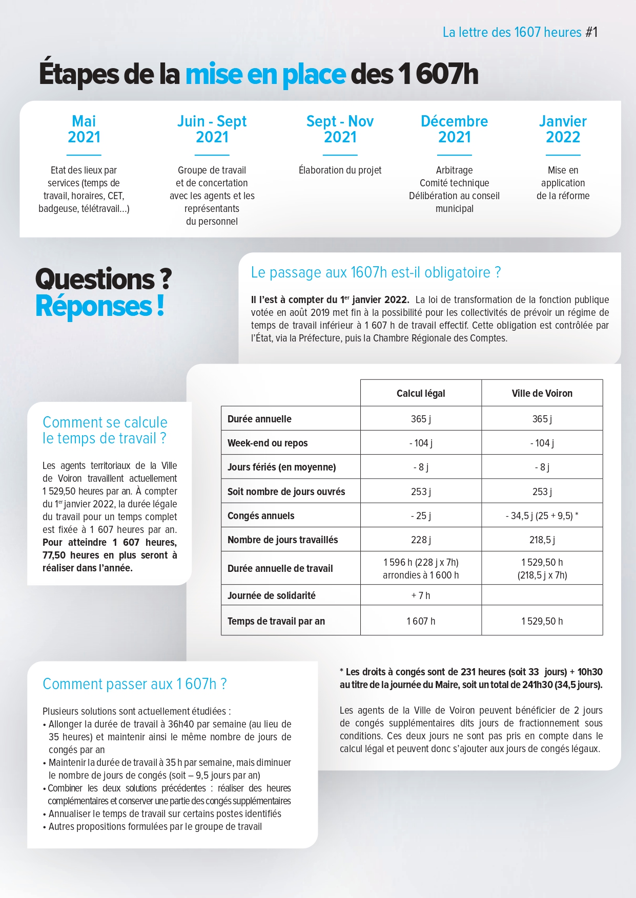 Afin de vous informer tout au long de la démarche, une communication sous la forme d’une « Lettre des 1607h » est mise en place. Voici la Lettre des 1607h n°1 : Télécharger La lettre des 1607 heures
