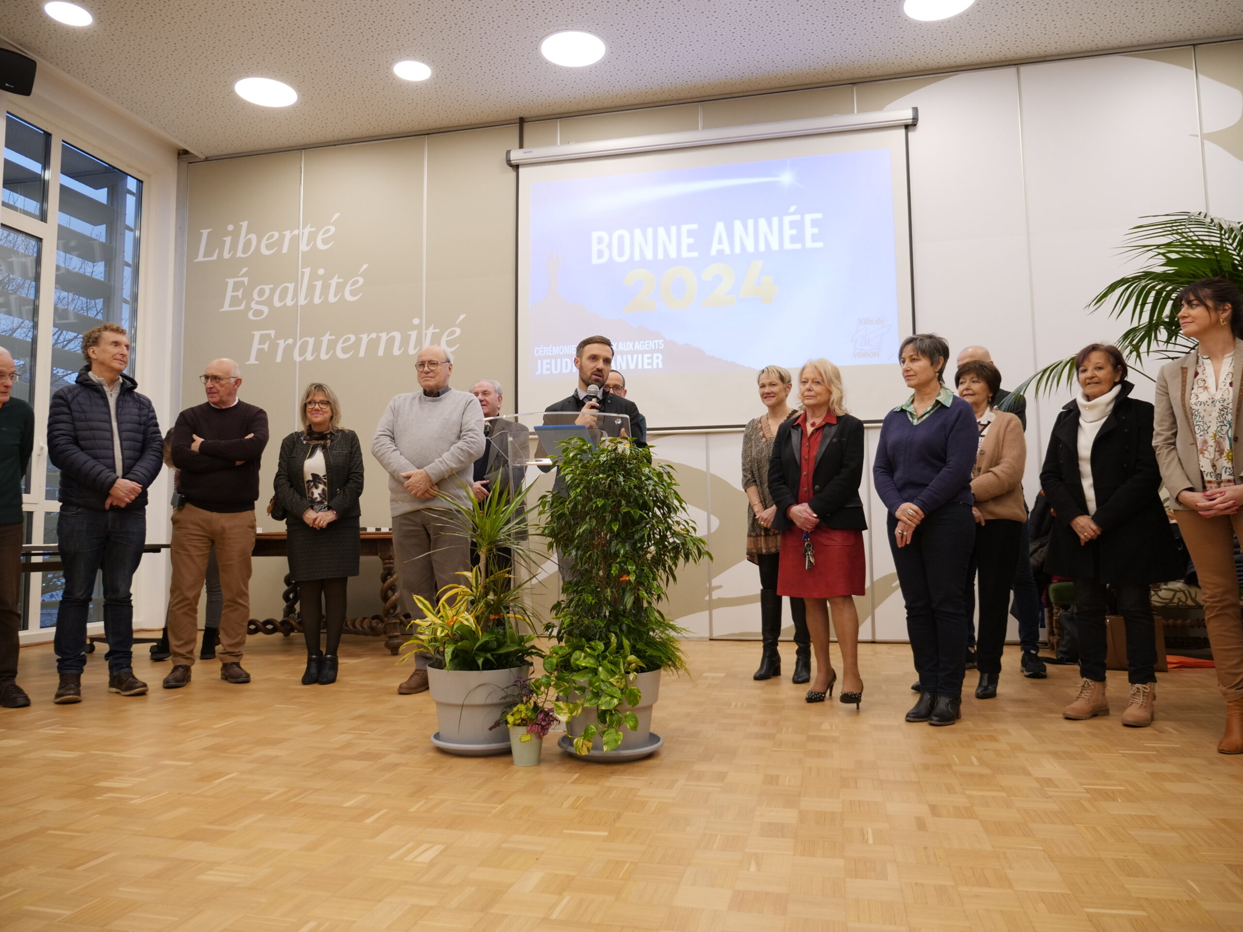 C’est dans le nouveau décor du salon d’honneur de l’Hôtel de Ville que le Maire de Voiron, Julien POLAT, a pris la parole pour offrir ses vœux de santé et de bonheur à l’ensemble des agents municipaux ce jeudi 18 janvier 2024 à 16h. Ce fut également l’occasion de rendre hommage aux agents médaillés pour leur engagement de longue date et ceux partis à la retraite récemment. L’évènement s’est poursuivi par la diffusion de la rétrospective 2023 et le partage des galettes des rois dont la frangipane a eu beaucoup de succès.